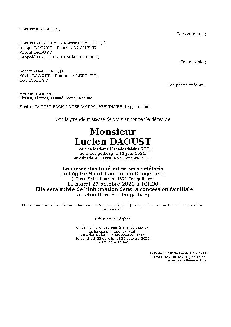 J'aurai voulu assister à l'enterremenent de Lucien mais nous sommes en quarantaine covid. Nous aurons une pensée pour lui et pour vous.