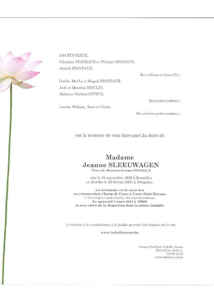 C'est avec beaucoup de tristesse que j'ai appris le décès de Madame Sleeuwagen.