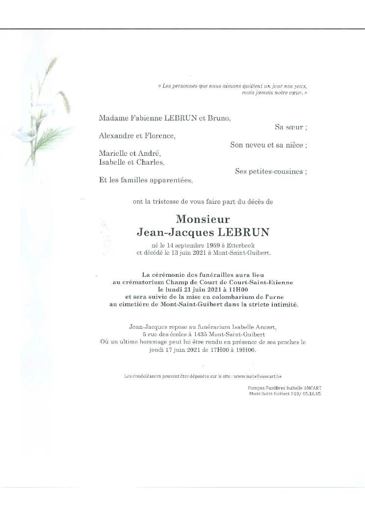 Toutes mes condoléances à la famille. Nous étions collègues et j'ai toujours apprécié Jean-Jacques. Son côté drôle, bougon, la main sur le coeur, sensible. Qu'il repose en paix.