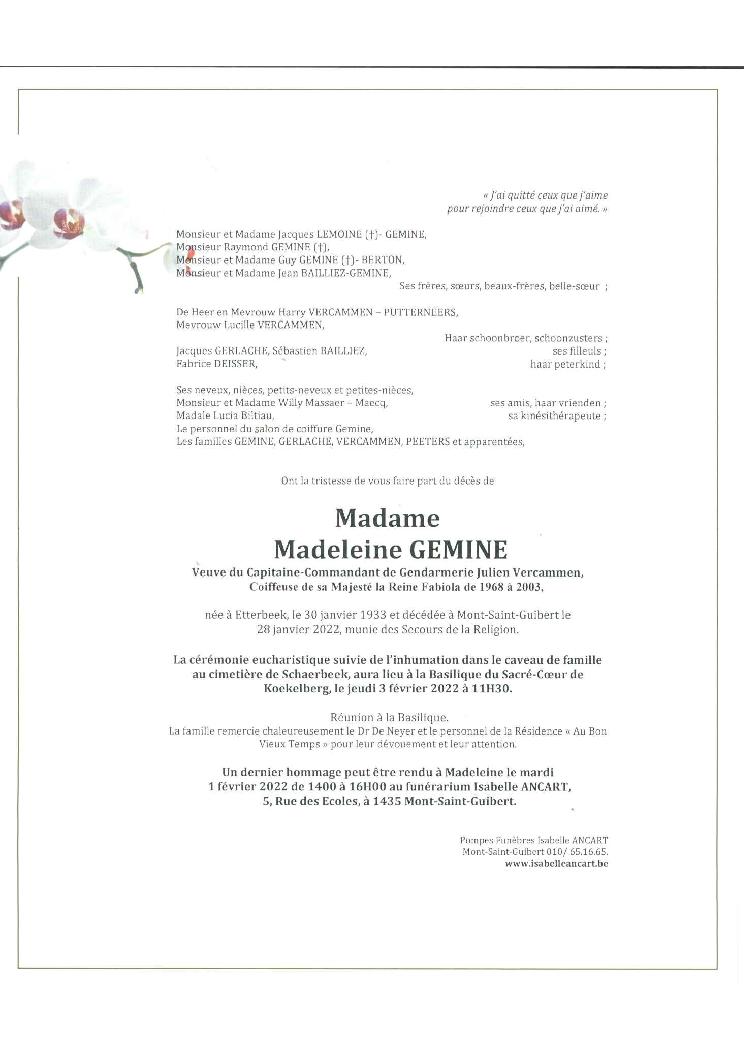 décédée à Mont-Saint-Guibert le 28 janvier 2022 à 88 ans.