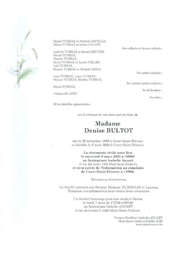 décédée à Court-Saint-Etienne le 03 mars 2022 à 91 ans.