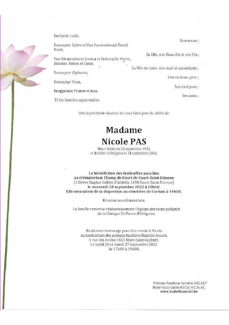 Elle fut un moment une collègue comme un rayon de soleil, toujours sympa, toujours souriante. Je l'ai revue par hasard à Wavre, il y a trois ou quatre ans et elle rayonnait encore et c'est le souvenir qu'elle laissera à nombre d'entre nous.