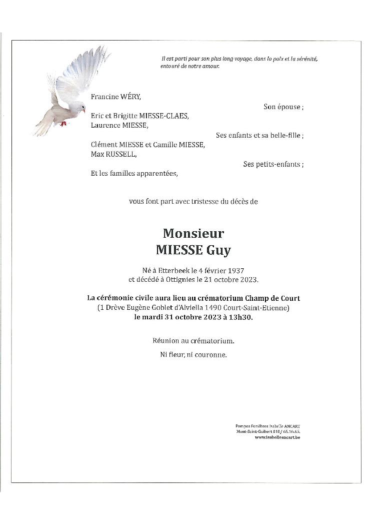 décédé à Ottignies le 21 octobre 2023 à 86 ans.