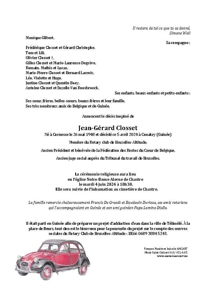 C'est avec beaucoup d'émotion que j'ai appris le décès de Jean-Gérard, par ma fille Isabelle. J'ai toujours gardé un excellent souvenir des camps louveteaux que nous avons passés ensemble .