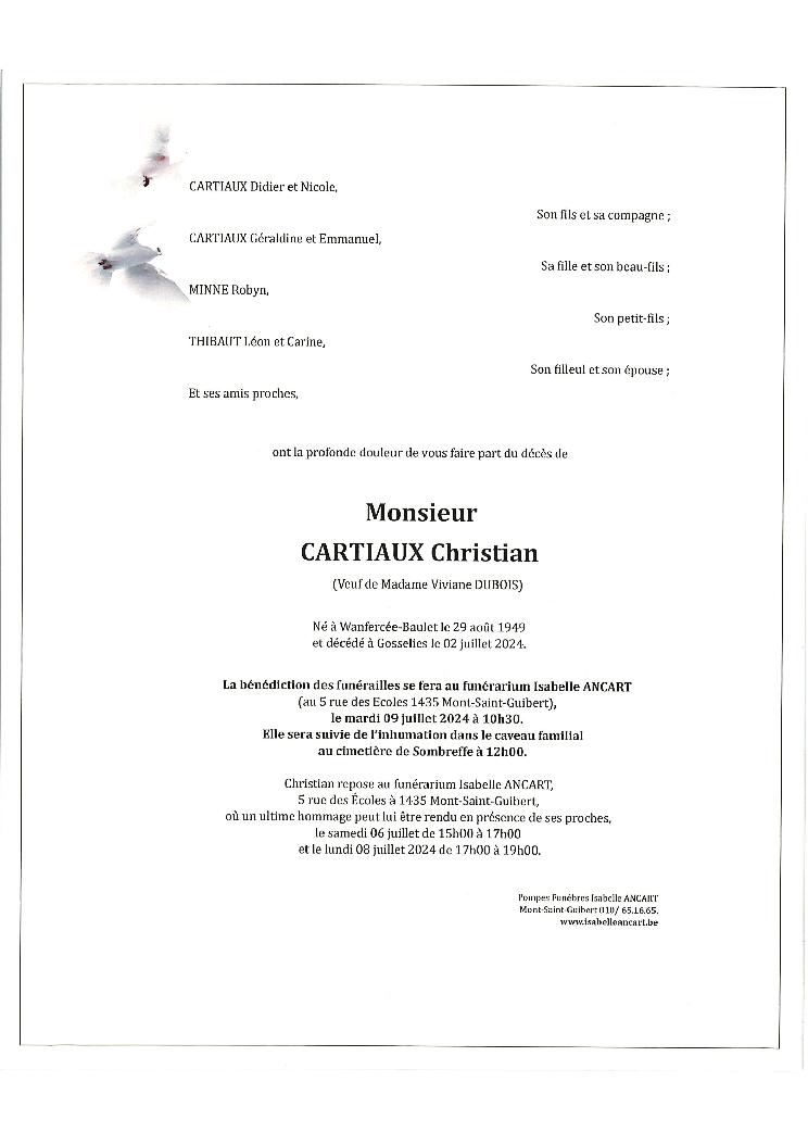décédé à Gosselies le 02 juillet 2024 à 74 ans.