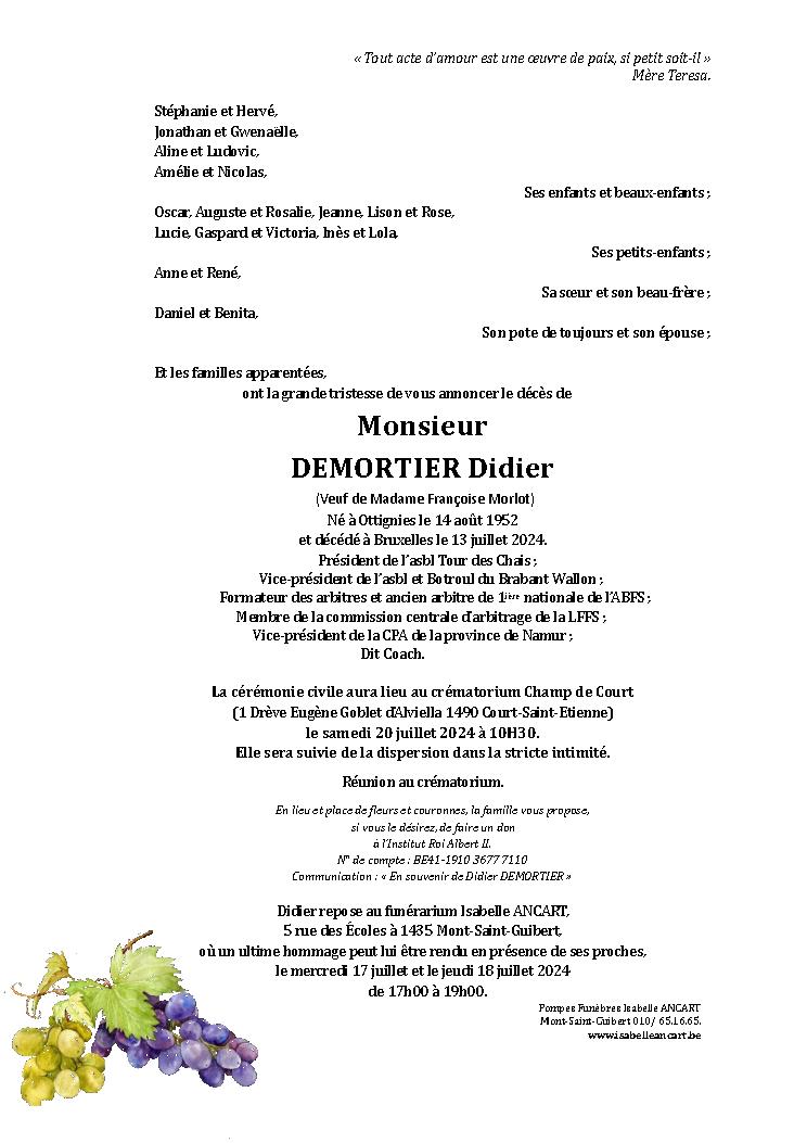 décédé à Bruxelles le 13 juillet 2024 à 71 ans.