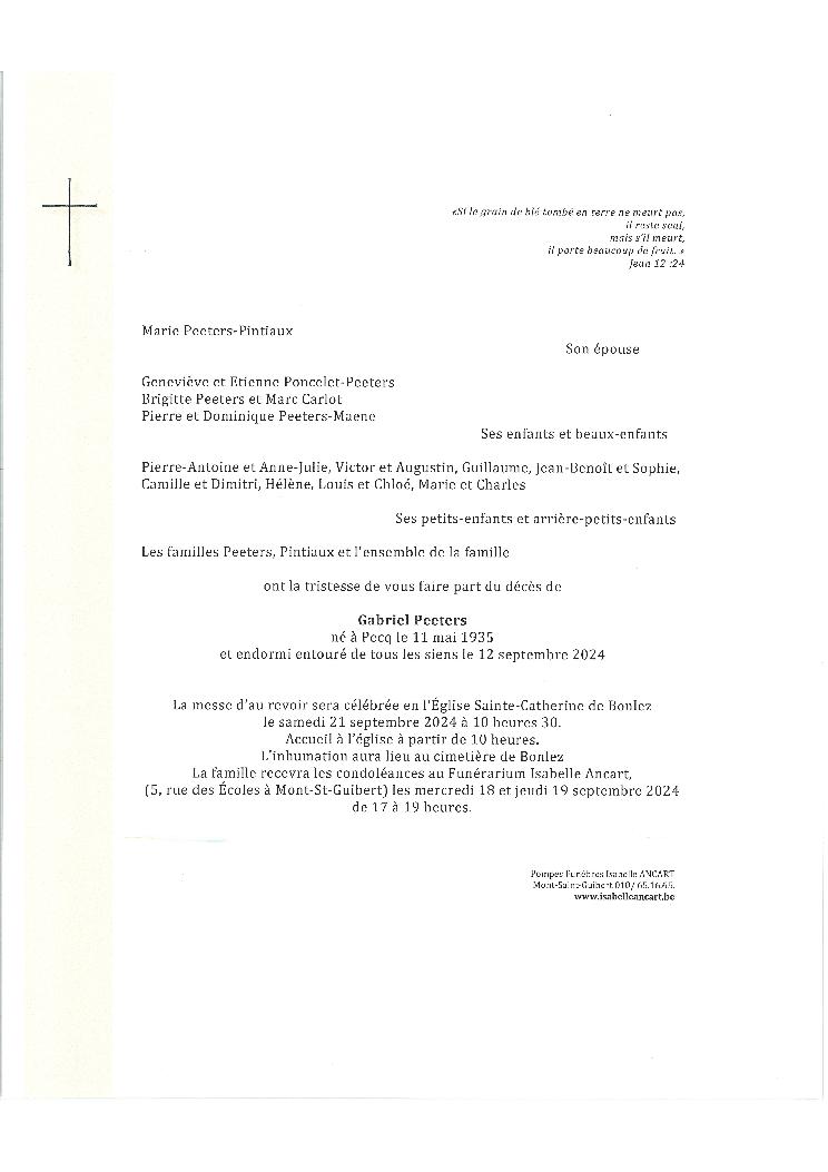 Bien affectueusement, à samedi parmi vous pour cet au revoir à Gabriel.
