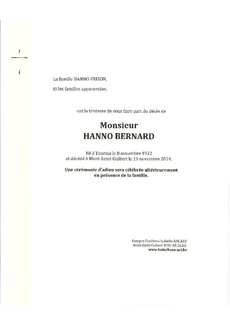 décédé à Mont-Saint-Guibert le 19 novembre 2024 à 92 ans.