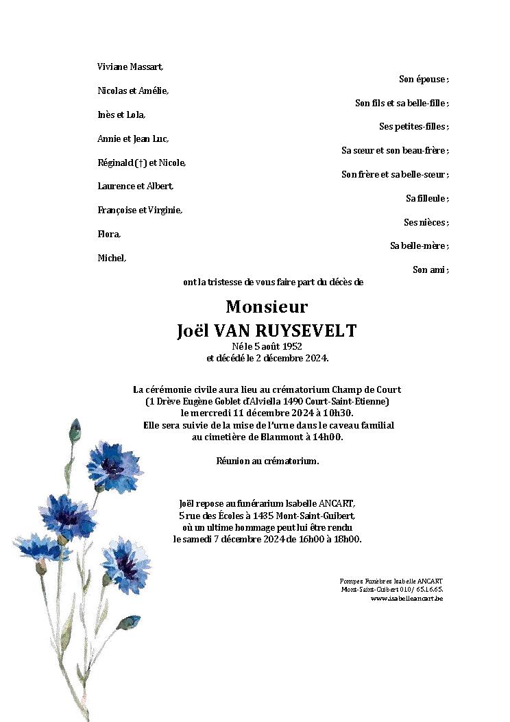 Nous gardons de Joël que de bons moments. Courrage à toi et à votre fils&famille dans cette période très douloureuse.