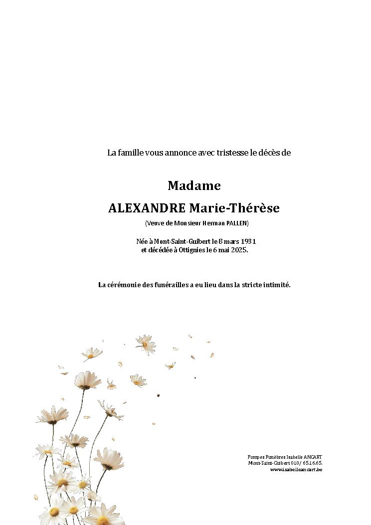 décédée à Ottignies le 06 mai 2025 à 94 ans.