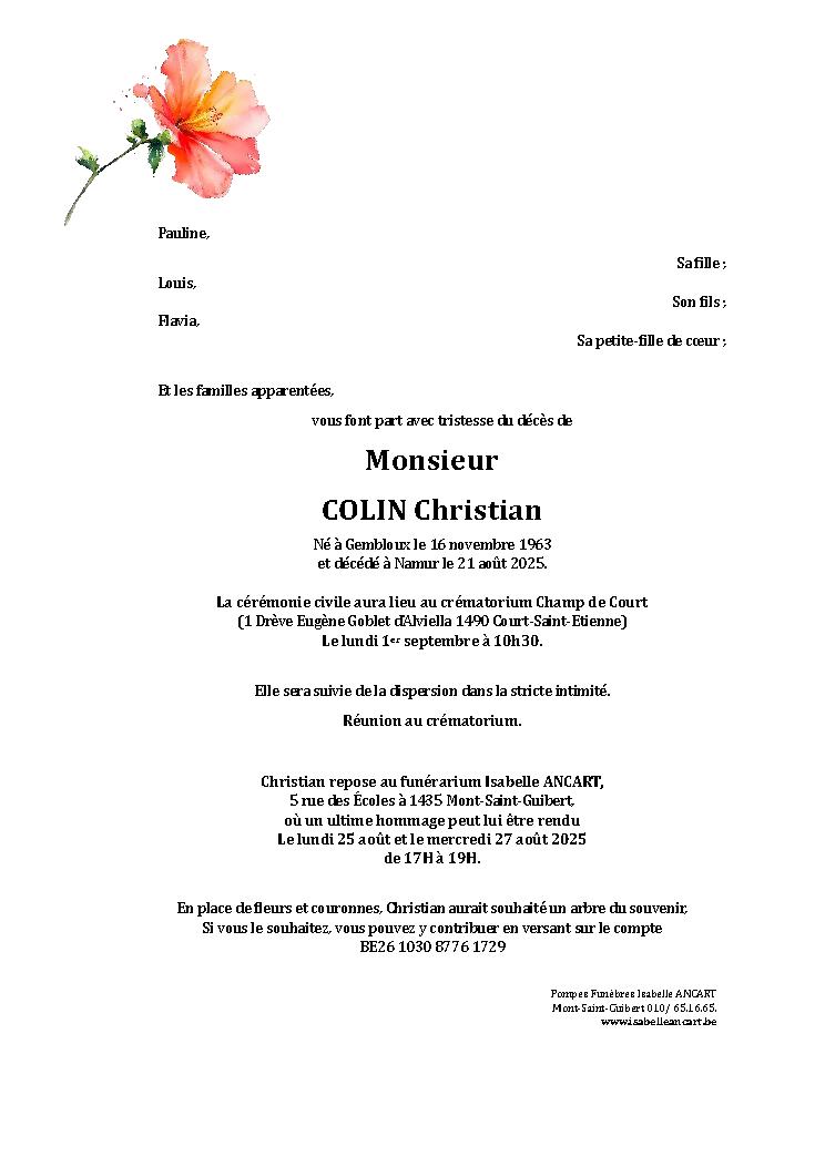 Toutes nos condoléances, repose en paix Christian. Beaucoup de courage à la famille en ces heures difficiles.