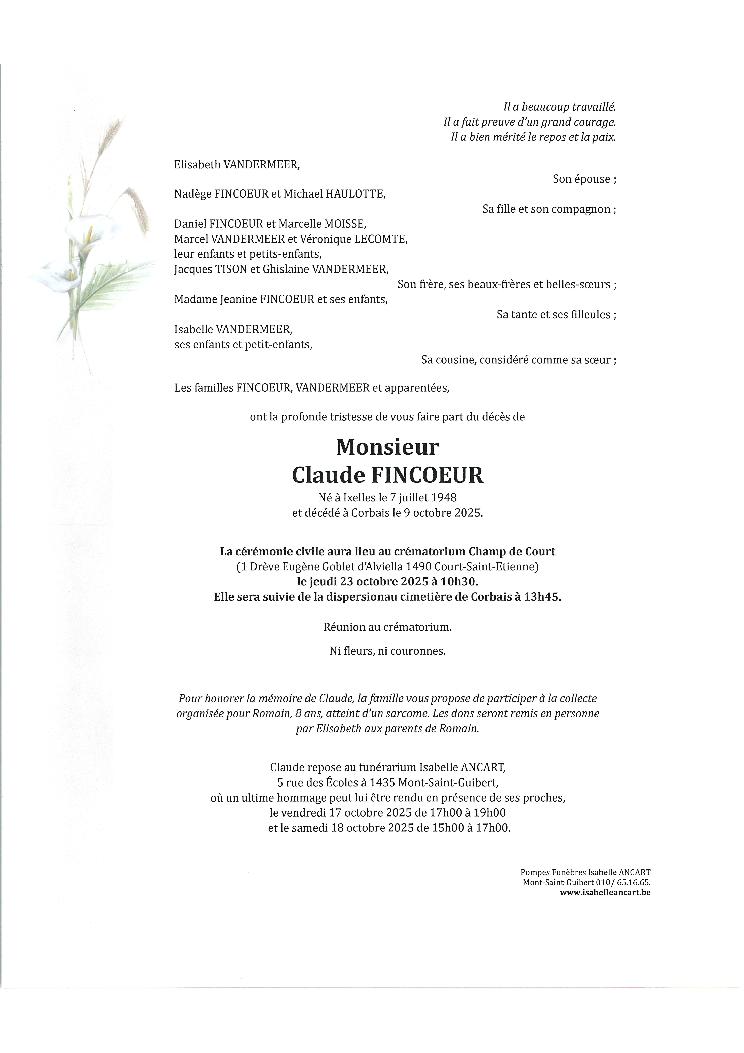 Sincères condoléances à Elisabeth et sa famille et vous souhaite courage en ces moments difficiles.