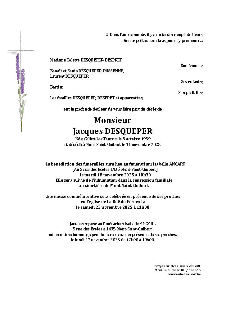 Marie et moi vous présentons nos sincères condoléances à l'occasion du décès de Jacques.